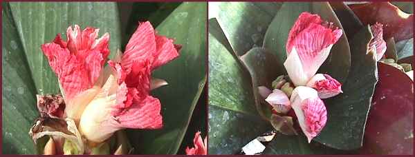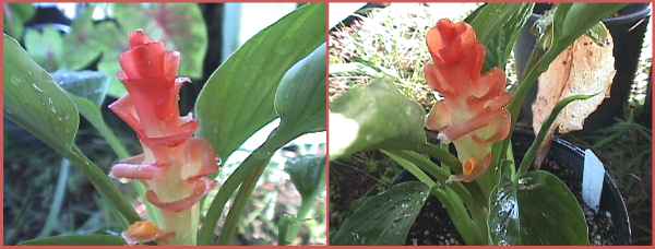 This ginger is part of the curcuma family, also known as "the Hidden Gingers", because the flowers are generally borne down at the base, so they tend to "hide" among the leaves.