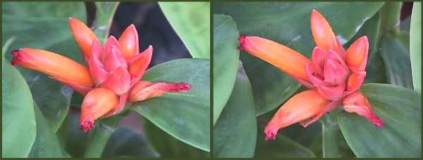 The above ginger is a dwarf costus, only growing a couple of feet tall. Other varieties can grow from 6 to 10 feet tall.